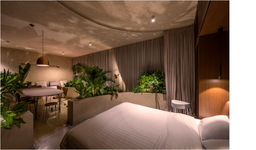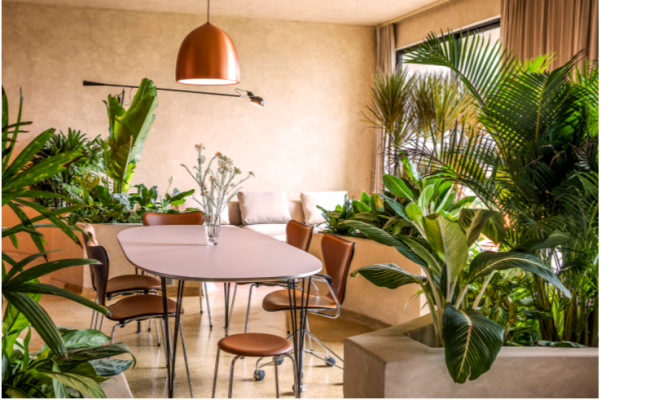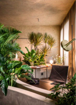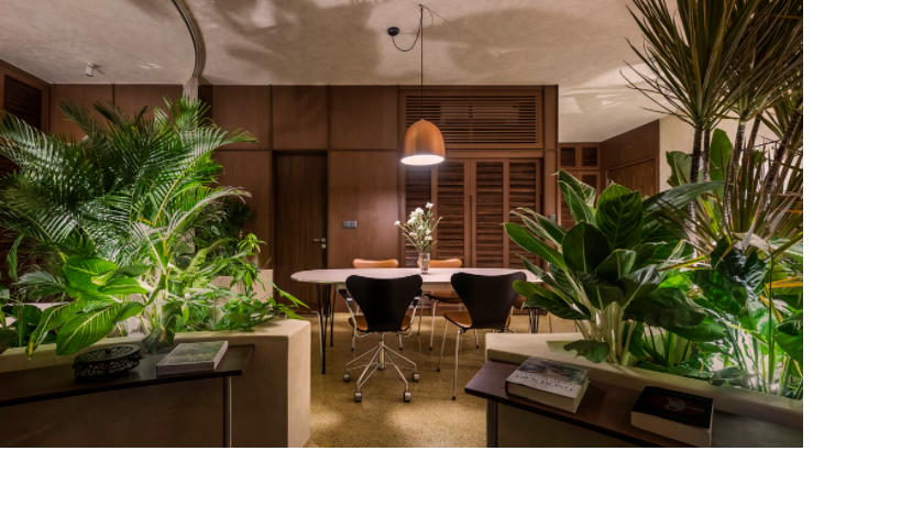 Với bồn cây nhiệt đới, đường cong và vật liệu địa phương, các kiến trúc sư Nhật biến căn hộ 86 m2 thành khu rừng sáng tạo, đa văn hóa.