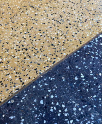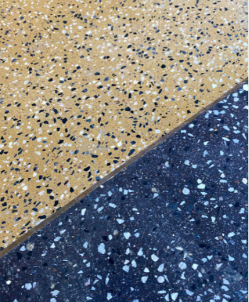 Ngoài mục đích tạo nên một khu rừng nhiệt đới, các kiến trúc sư còn hướng đến sự sáng tạo, thể hiện ở phần sàn đá terrazzo. Mỗi khu vực chức năng lại có một màu sàn riêng.